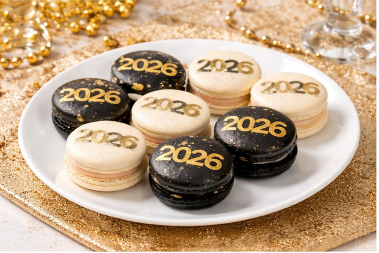 A fall favorite, blending rich chocolate with creamy pumpkin filling. Each macaron is adorned with a handcrafted chocolate leaf — a cozy nod to crisp autumn days.