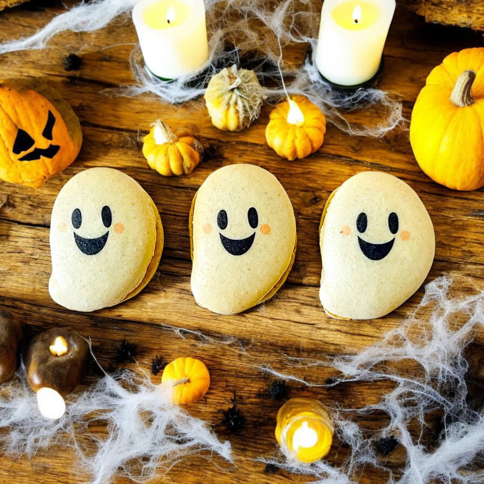 No scares here—just charming ghost macarons baked to make your Halloween extra special.