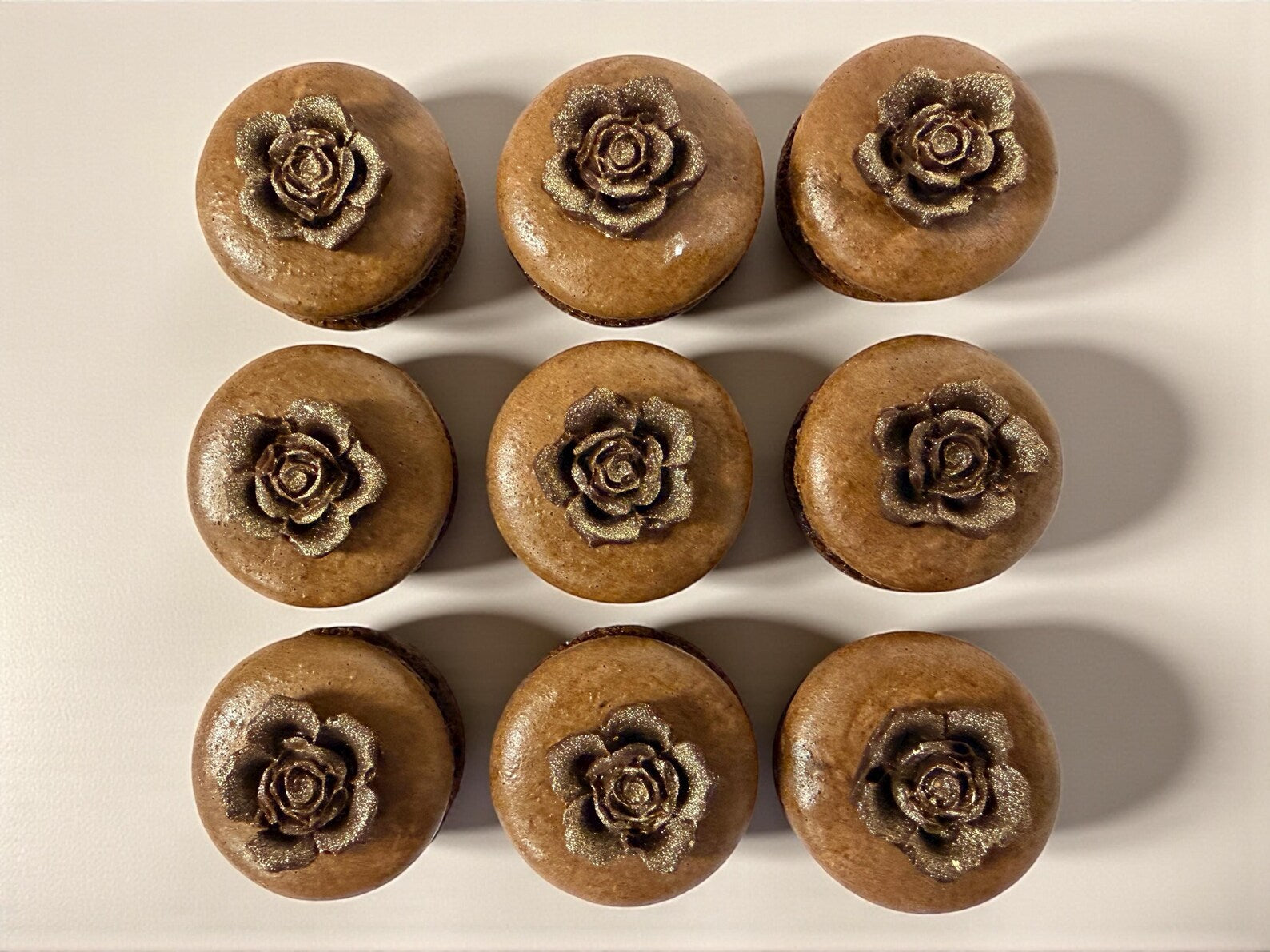 A luxurious macaron set finished with shimmering rosette accents. Subtle, refined, and beautifully indulgent.