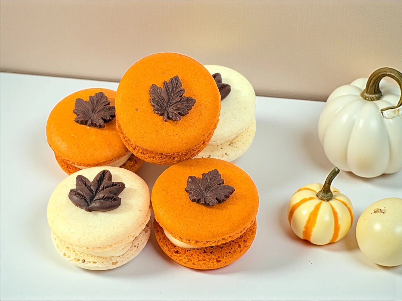 A fall favorite, blending rich chocolate with creamy pumpkin filling. Each macaron is adorned with a handcrafted chocolate leaf — a cozy nod to crisp autumn days. Order Now