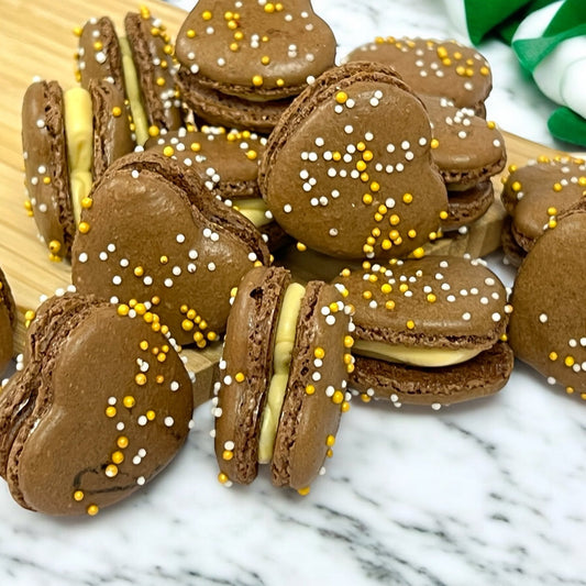 Golden Espresso Heart French Macarons | Ideal for Valentine's Day gifts, birthdays, weddings, anniversaries and more