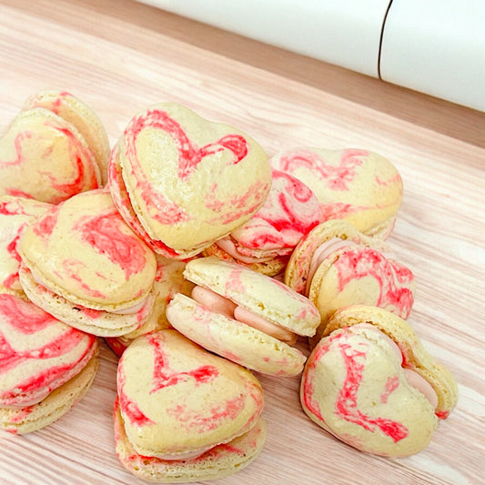 Pink Swirl Heart French Macarons | Ideal for Valentine's Day gifts, birthdays, weddings, anniversaries and more
