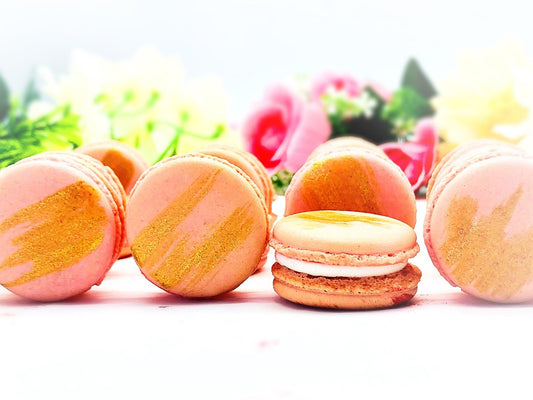 Rosewater Gold Brushed Macarons | Perfect for your next celebratory events.