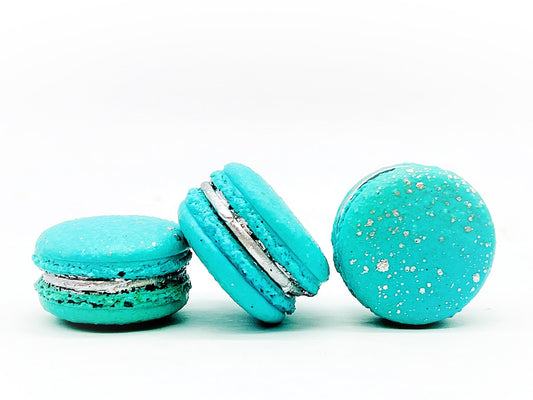Luxe Mac | Sky Blue Macaron with Silver Splatter | Available in 6, 12 and 24 Pack
