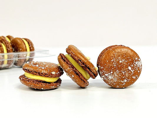 Wholesale Yellow Planet (Lemon Chocolate) Vegan Macarons | Available in 24 & 48 Pack