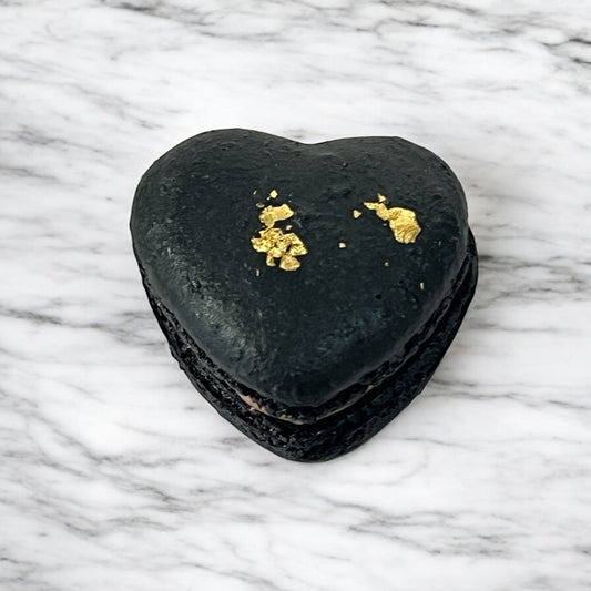 Elegant Black Heart Macarons with 24K Gold Leaf