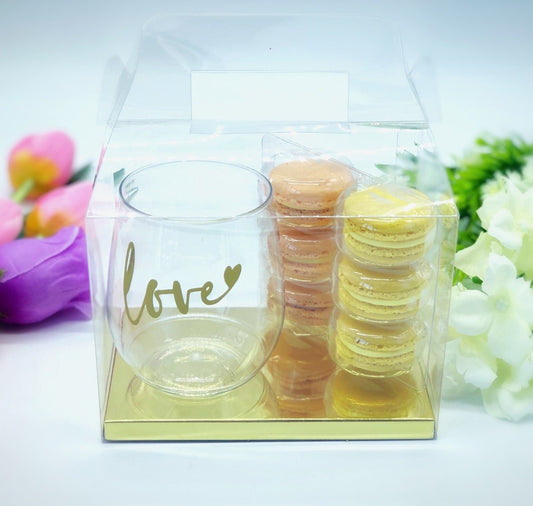Macarons gift set with customizable stemless wine glass | perfect for your next virtual party