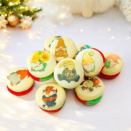Gnome-Themed Tricolor Swirl Macarons - Custom Flavors | Available in 6, 12 & 24 Pack