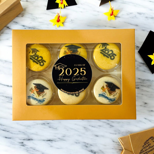 Class of 2025 French Macaron Box | Available in 6 & 12 Pack | Graduation Themed Macarons