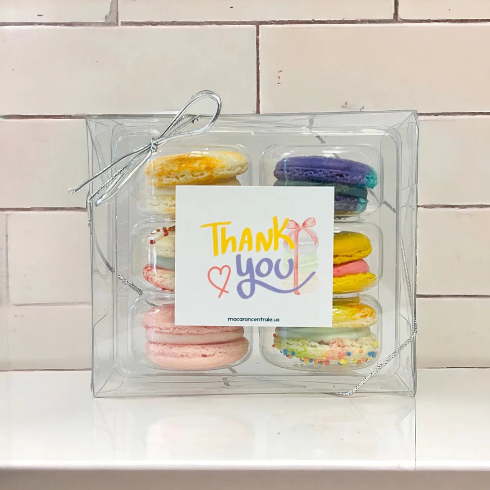 For couples who want to make a sweet statement, the 6-Pack Clear Gift Box offers a delightful presentation of macarons. The transparent design allows your guests to visually enjoy the vibrant colors and artistry of each macaron before savoring their delicious taste. This option is perfect for modern weddings that lean towards minimalism with a chic twist. The sleek clear box also lends itself well to customization—add a simple bow or a personalized thank you tag to match your wedding colors.