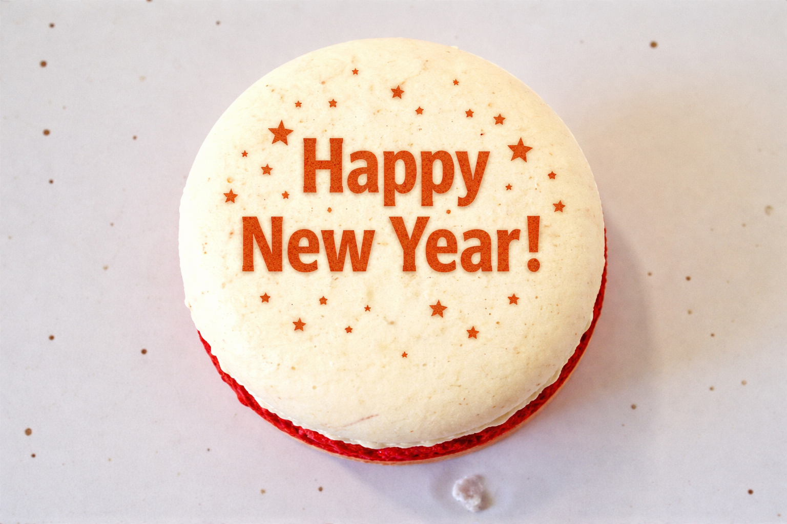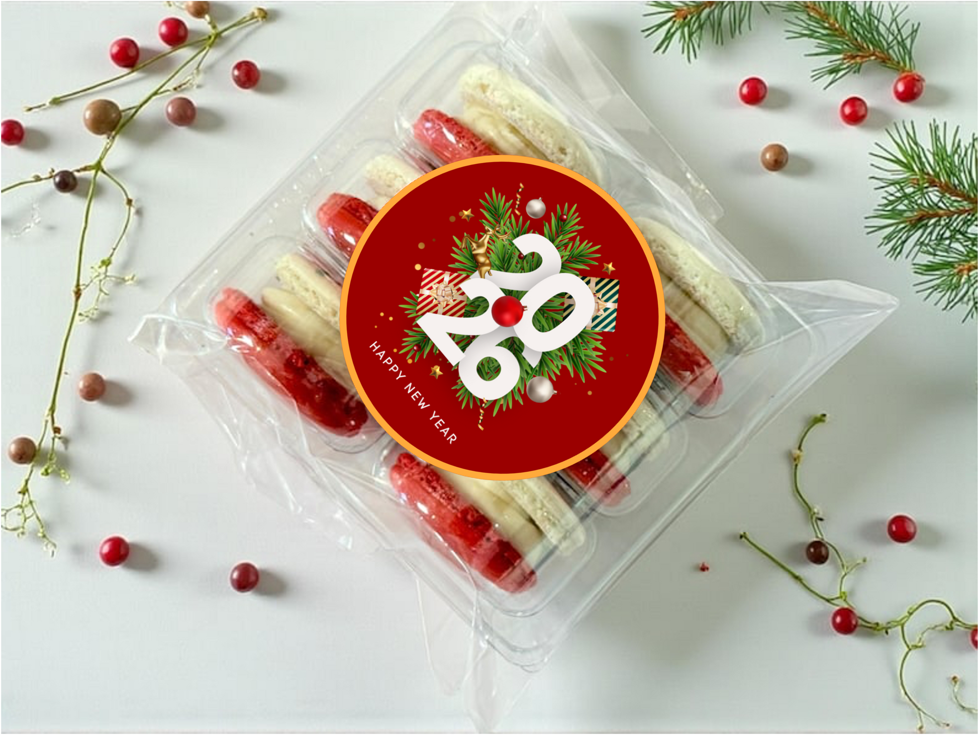 Celebrate the start of a brand-new year with our festive Happy New Year French macarons, handcrafted and made fresh to order. Each macaron features an ivory shell printed with a cheerful βHappy New Year!β message, paired with a bold red shell on the opposite side and a smooth, creamy filling.