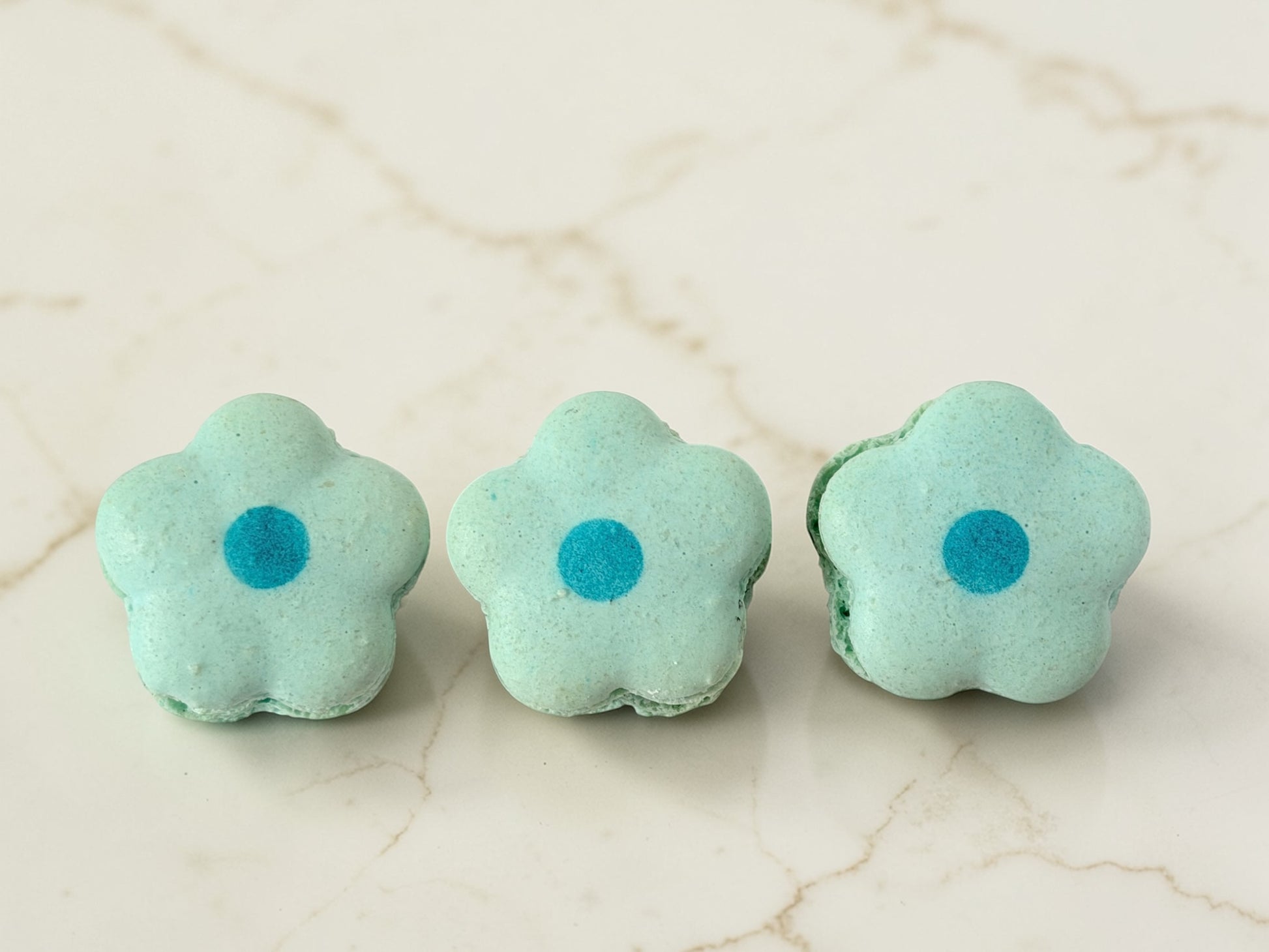Bring color and charm to your celebration with our Blueberry Flower French Macarons. Each macaron is handcrafted into a delicate flower shape, featuring soft pastel blue shells with a vibrant blue center and filled with a smooth, fruity blueberry cream.