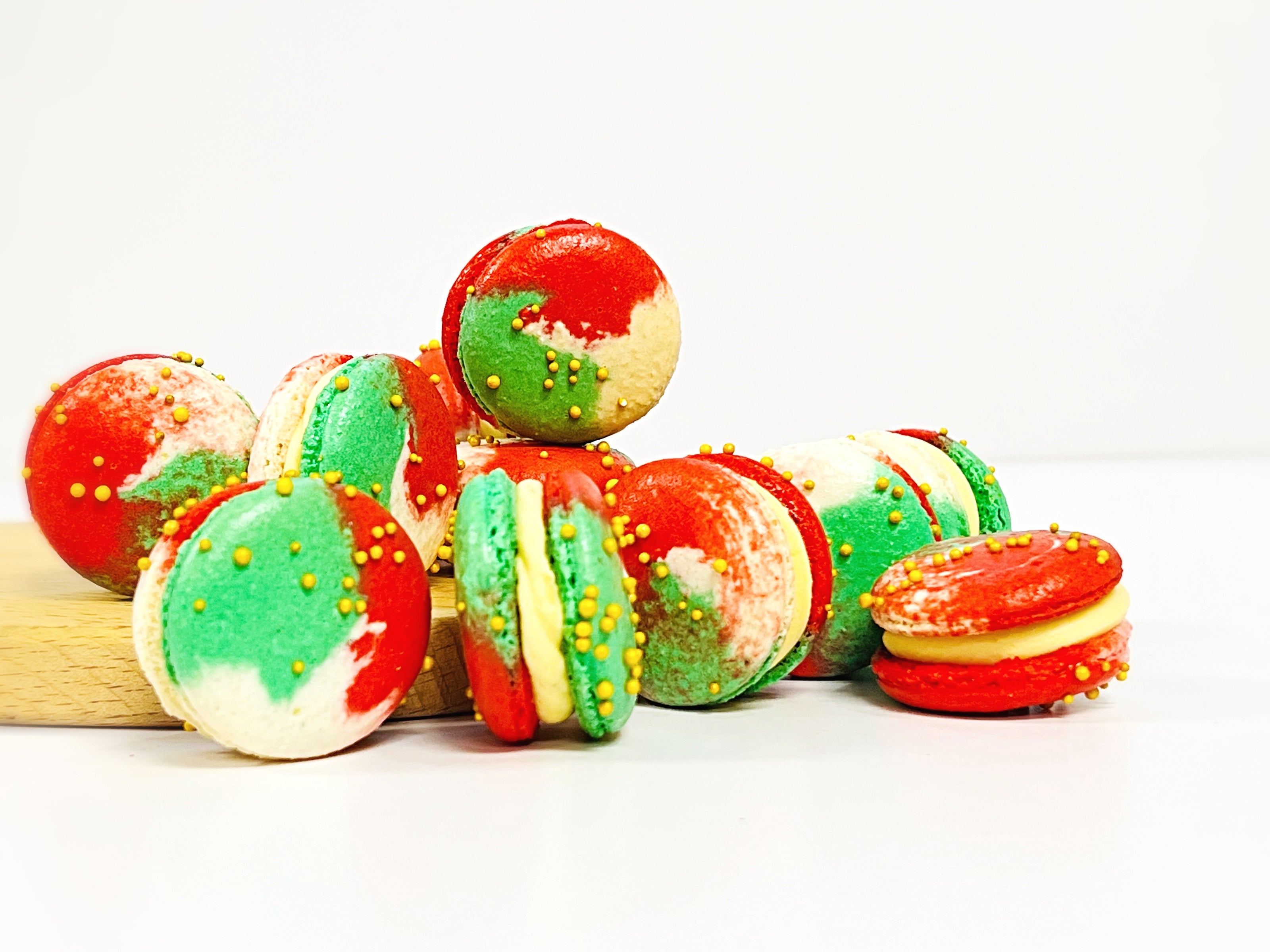 Luxe French macarons with pearl cut airbrush are available in 6, 12 & 24 pack.