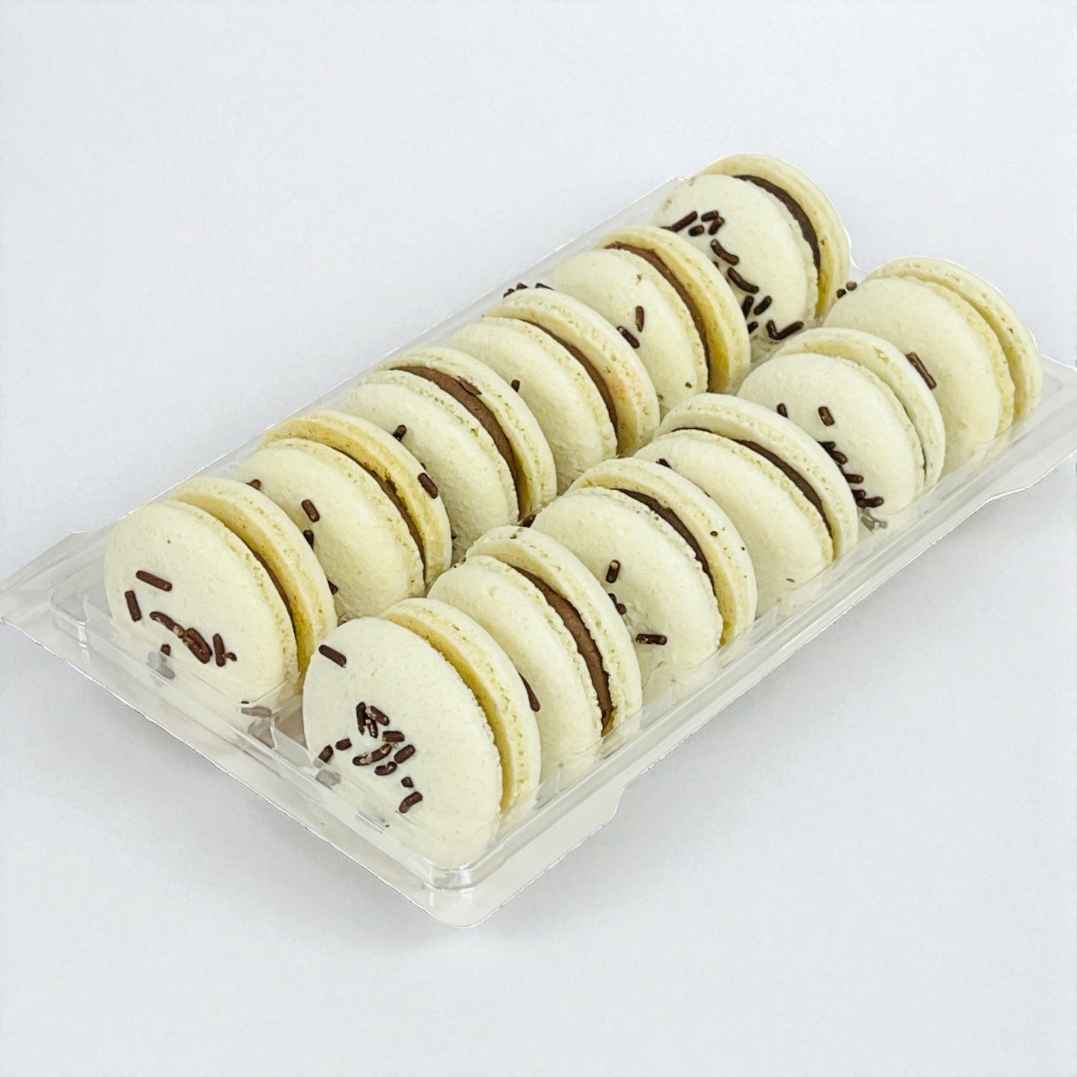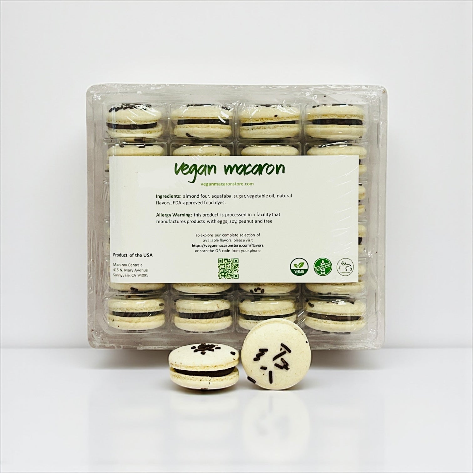 Make your next event unforgettable with our Naturally Vegan Chocolate Macarons, now available in bulk packs of 24 or 48. Each artisan macaron is crafted with crisp almond shells topped with chocolate sprinkles and filled with a rich, dairy-free chocolate ganache.
