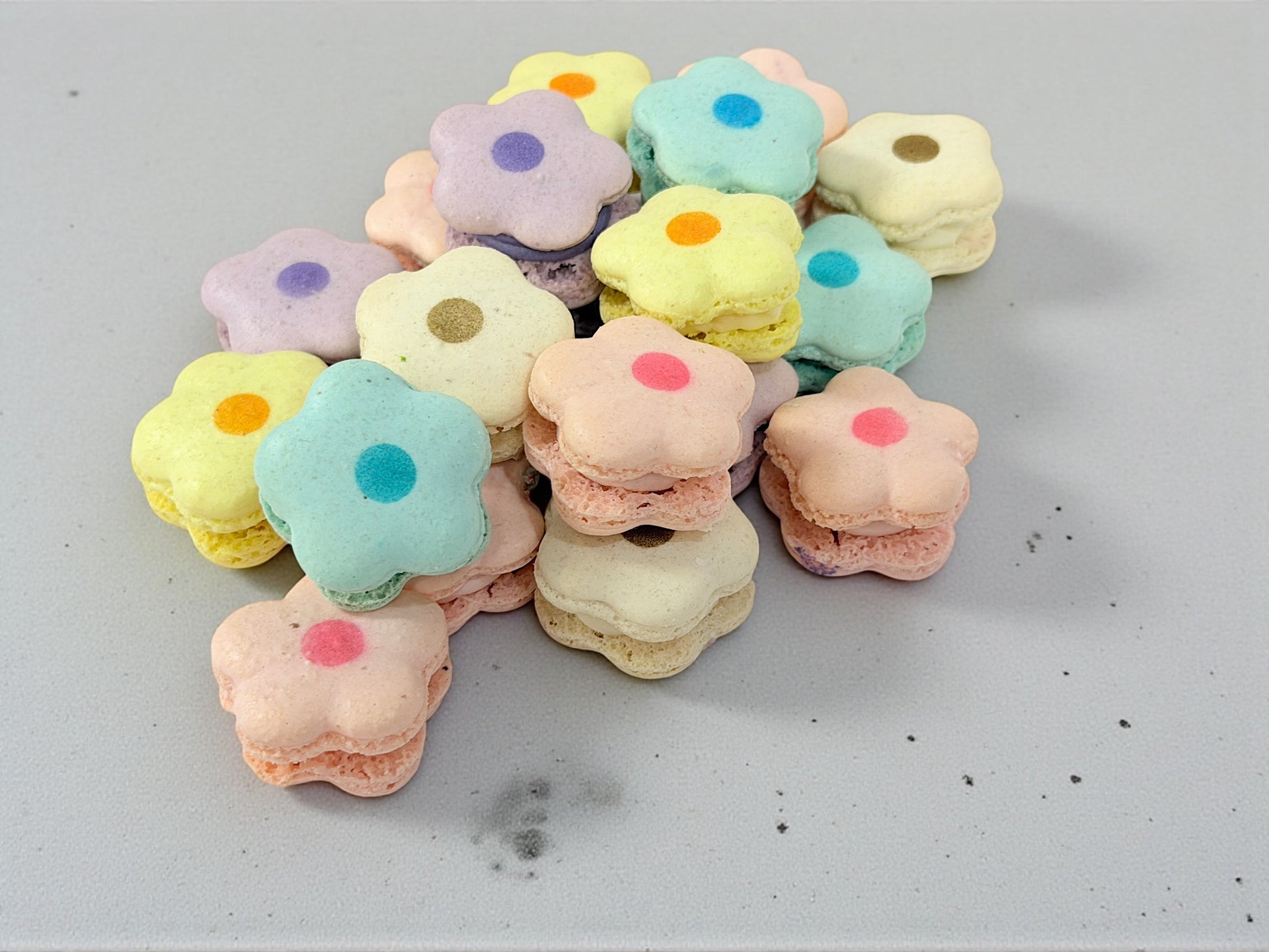 Perfect for parties, dessert tables, wholesale gifting, and special events, these petite blossoms add color, elegance, and sweetness to any setting. Every macaron is carefully piped, rested, filled, and packaged in secure trays to ensure they travel safely and arrive beautifully intact.