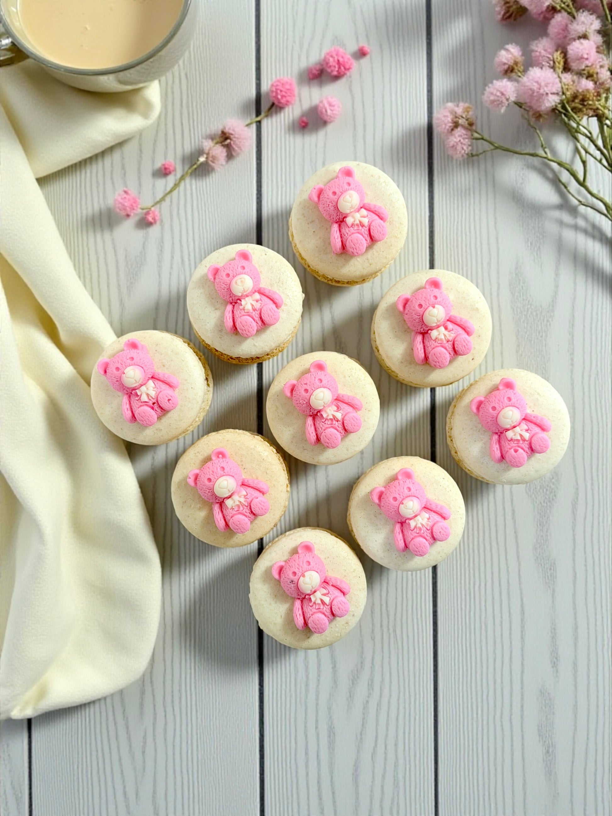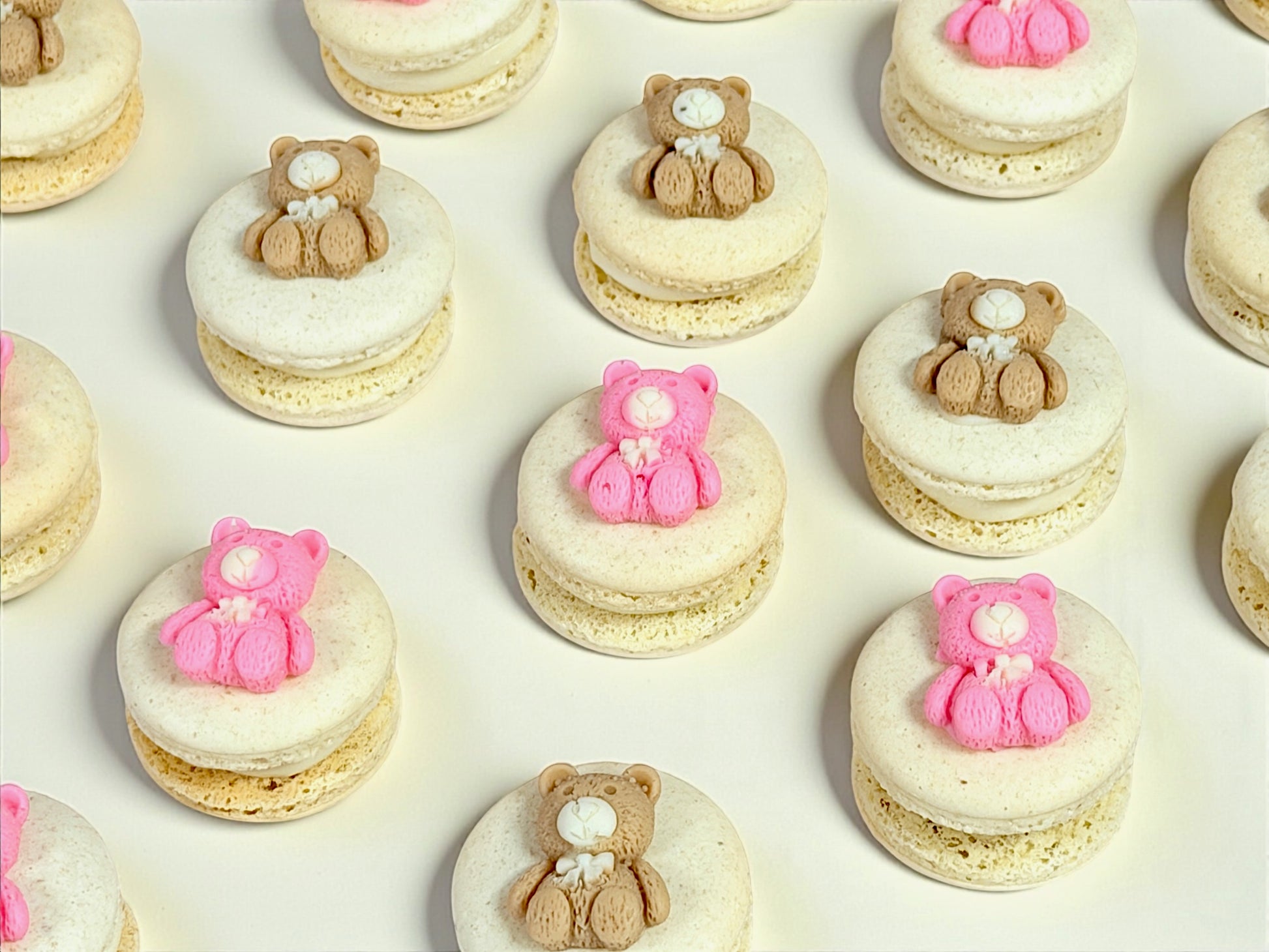 Add a touch of sweetness and charm to any celebration with our Pink Teddy Macarons — delicate French cookies adorned with an adorable pink teddy bear on each shell. These hand-decorated treats combine the elegance of Parisian patisserie with the playful spirit of childhood joy.
